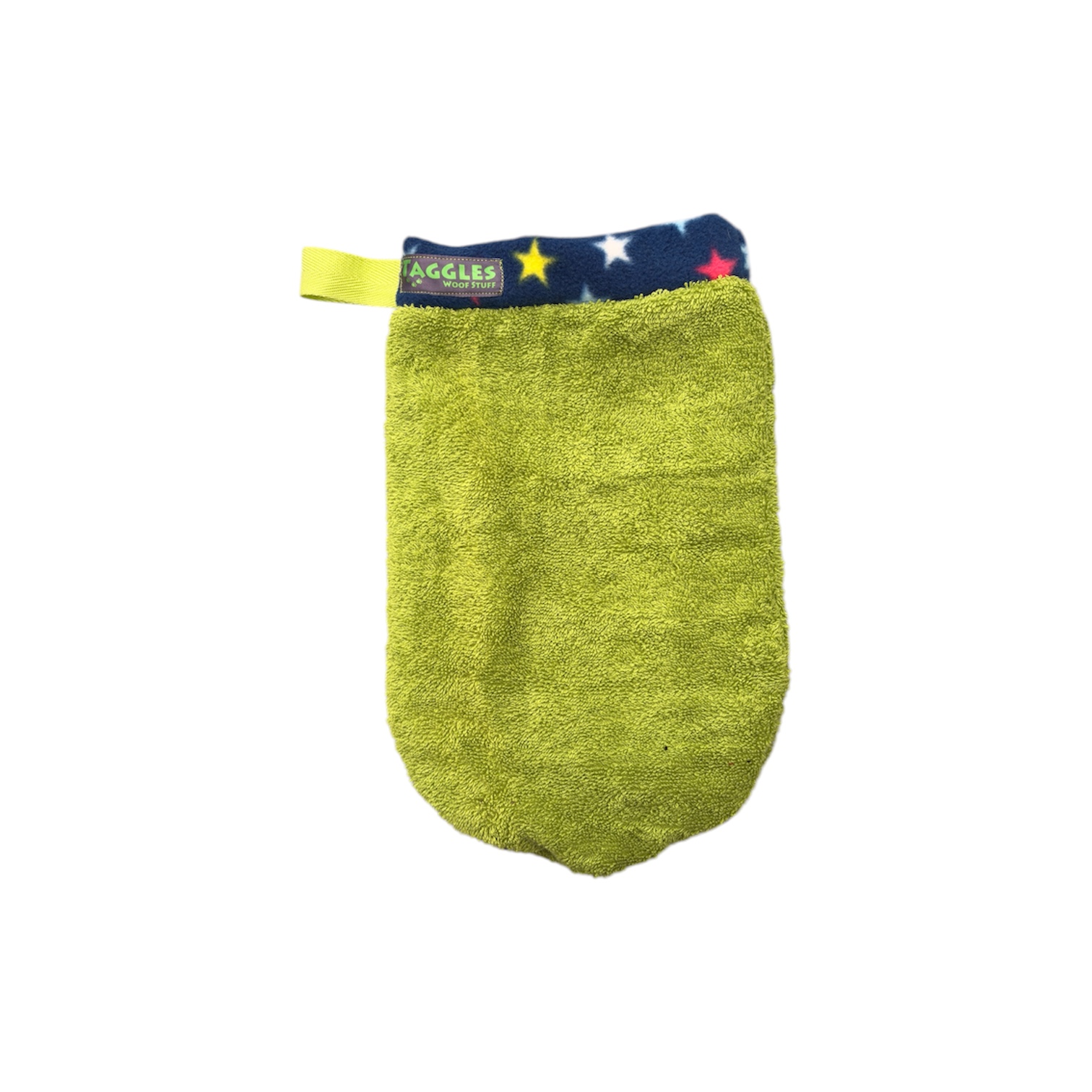 Designed for drying off those muddy and wet paws. One size fits any hand without having to get tangled in towels.